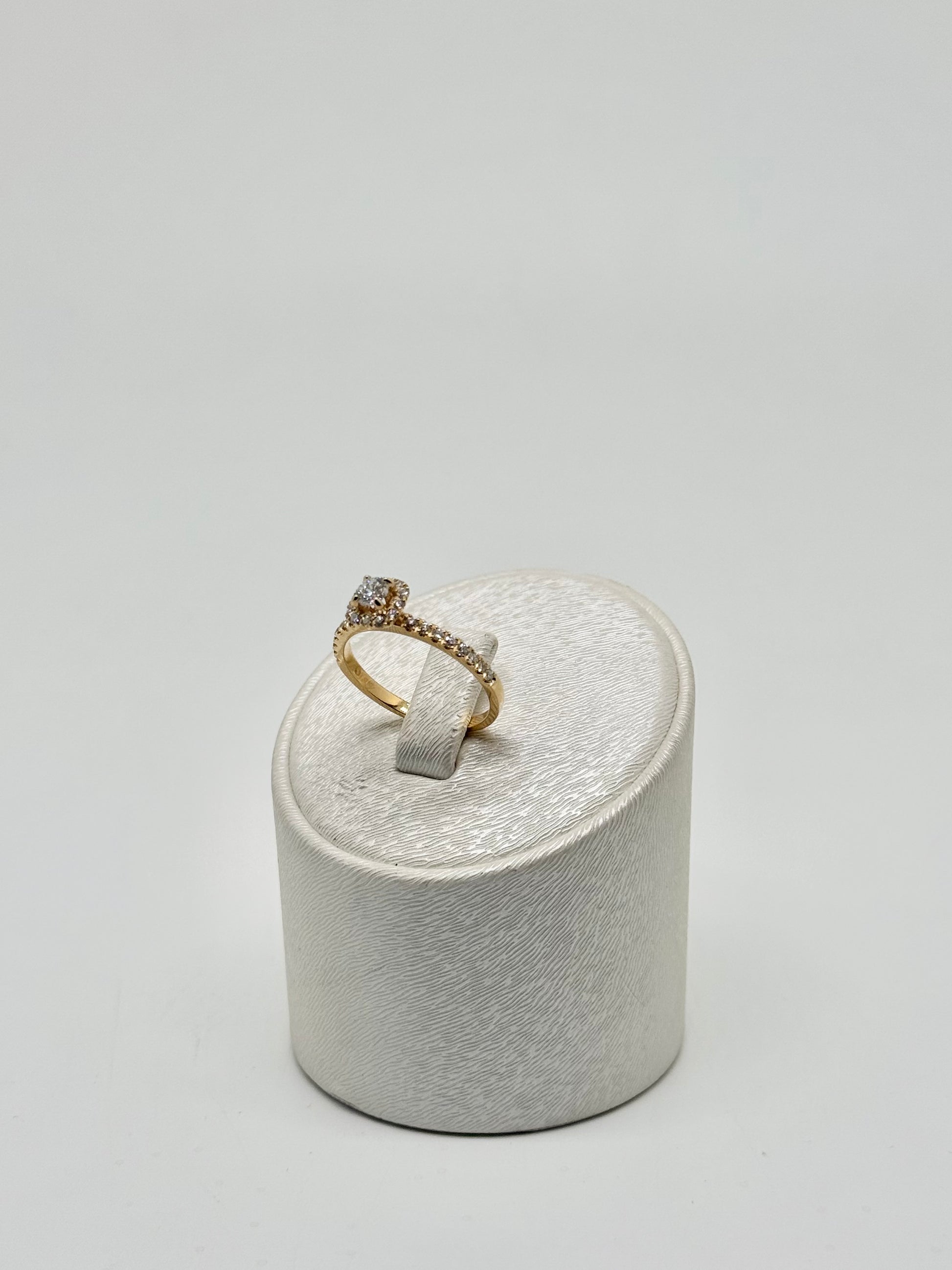 2.33g 18K/750 - total carats 0.52ct - central stone 0.21ct FVS2 - side stones 0.31ct FVVS1