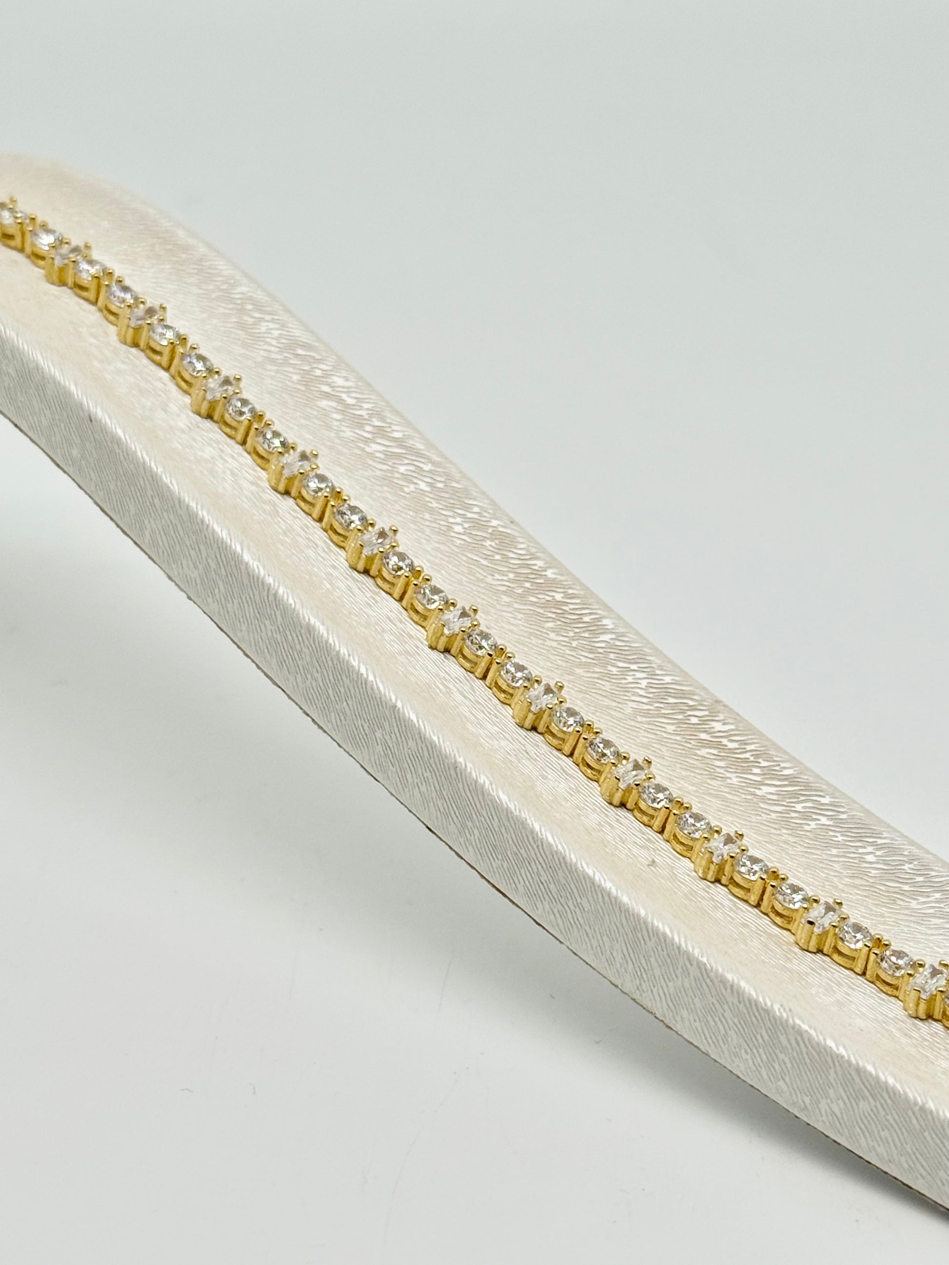 Tennis bracelet in 925 sterling silver plated with 18-karat gold - round and baguette-cut brilliant zircon - 8.94 g