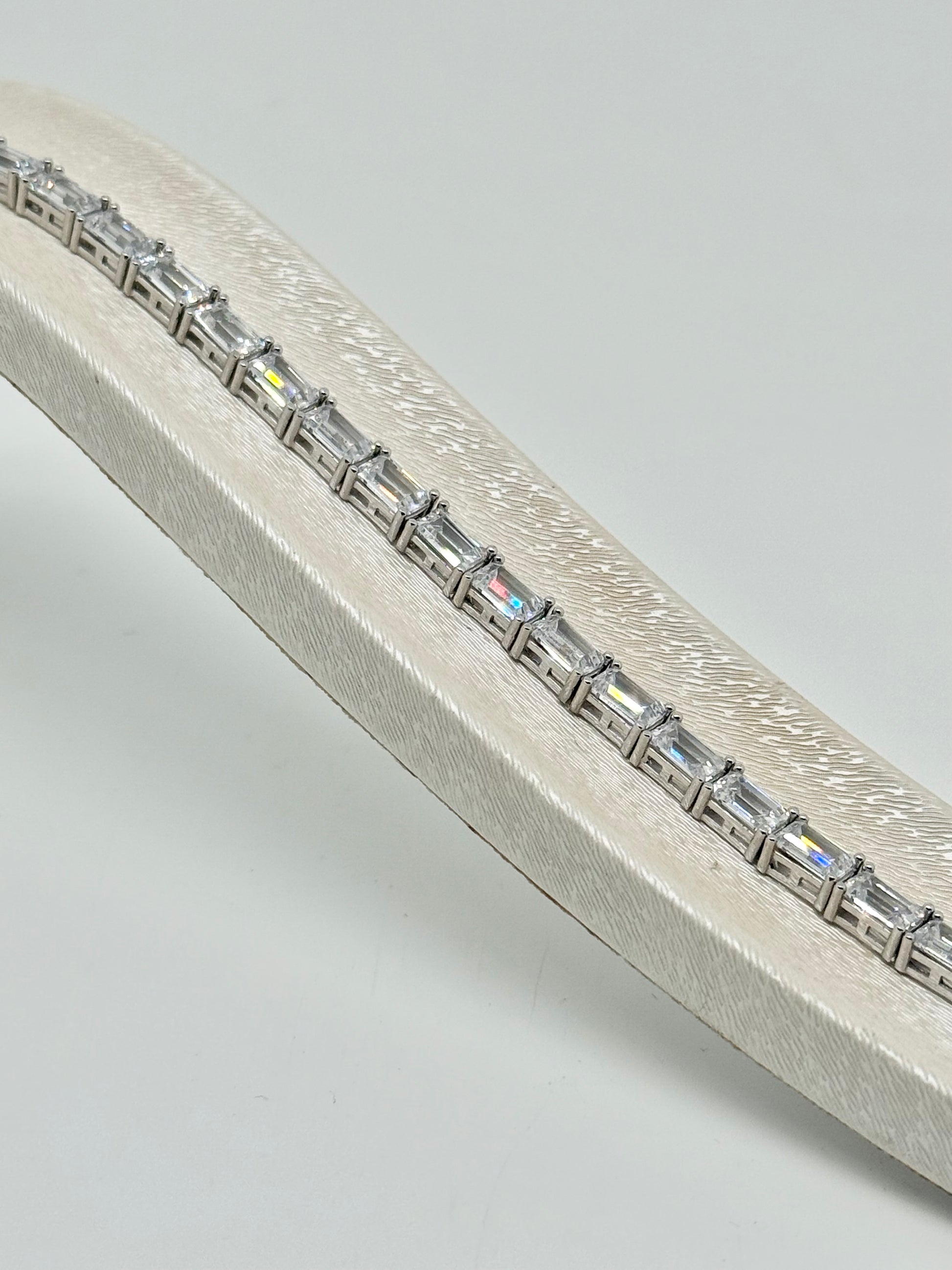 Tennis bracelet, emerald-cut zircon, 925 silver, 15.10 g