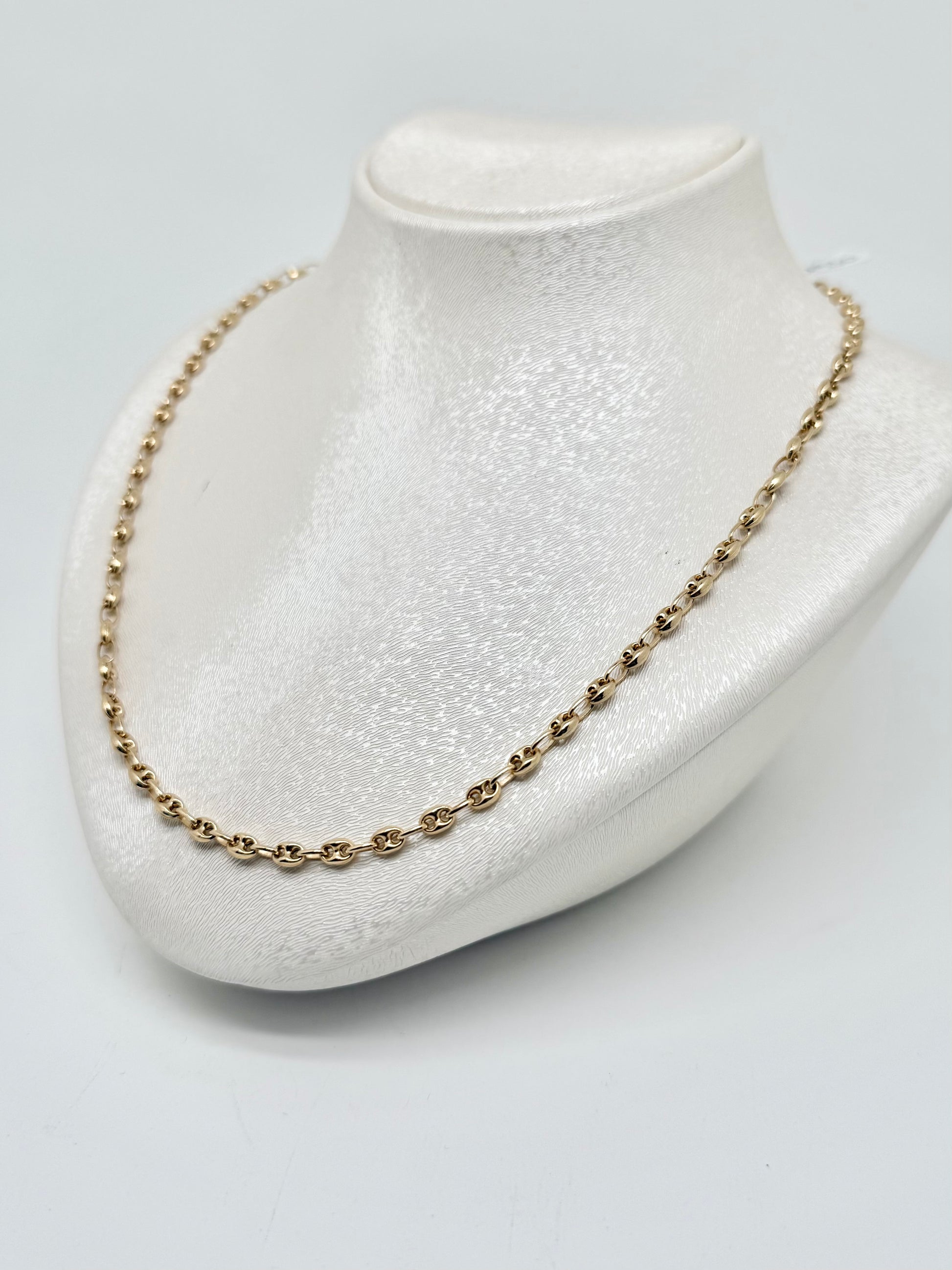 Yellow gold coffee bean chain necklace, 18 carats/750, 12.29g