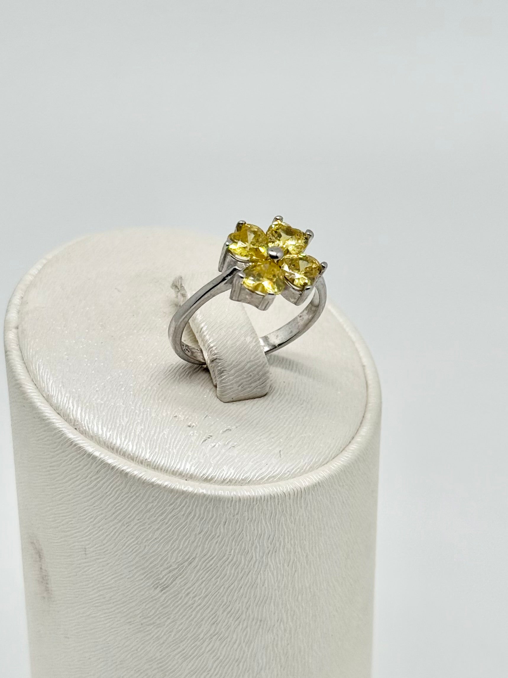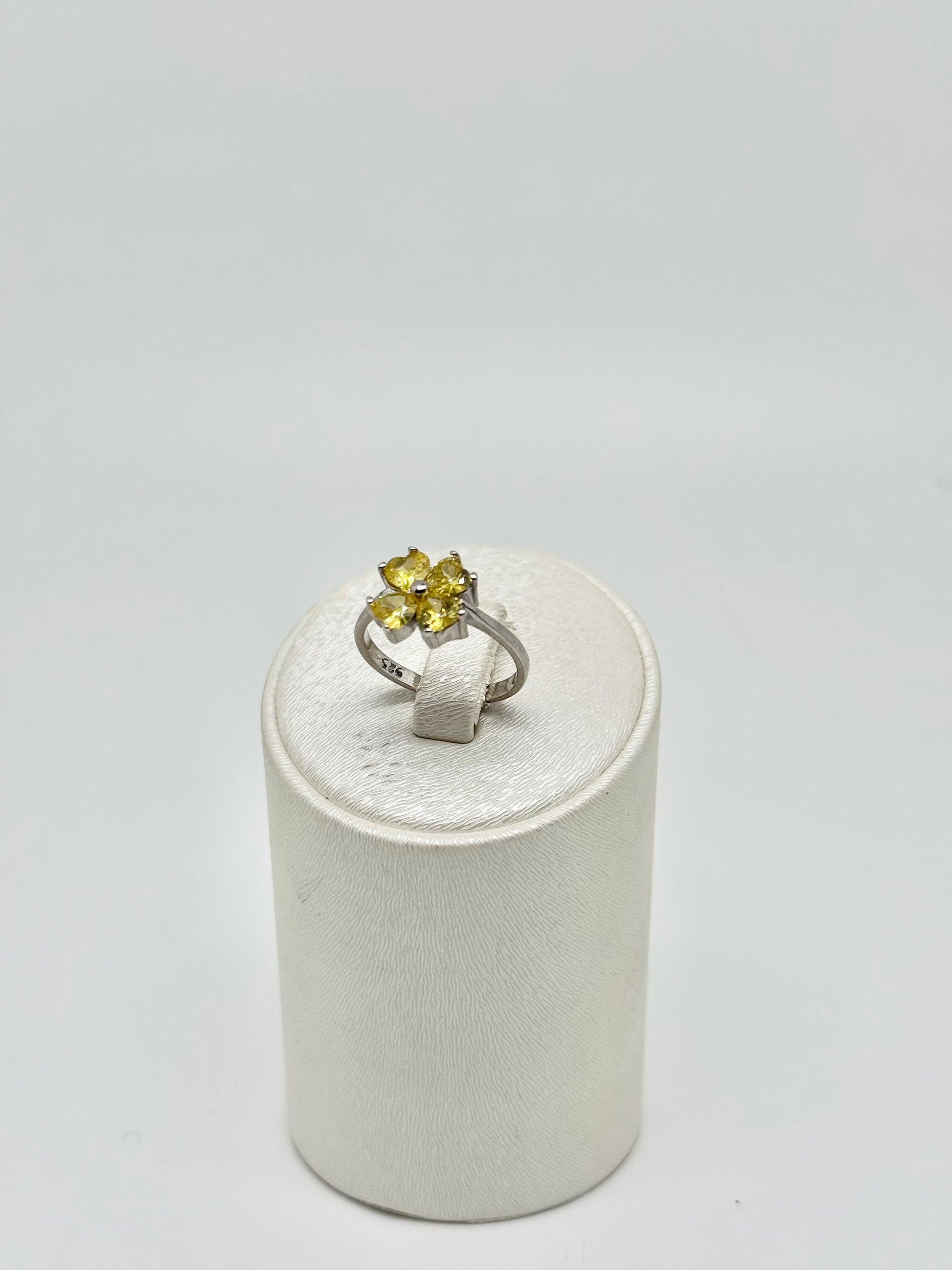 Ring van 925 sterlingzilver, bezet met hartvormige gele zirkonia, gerhodineerd zilver, 3,19 g
