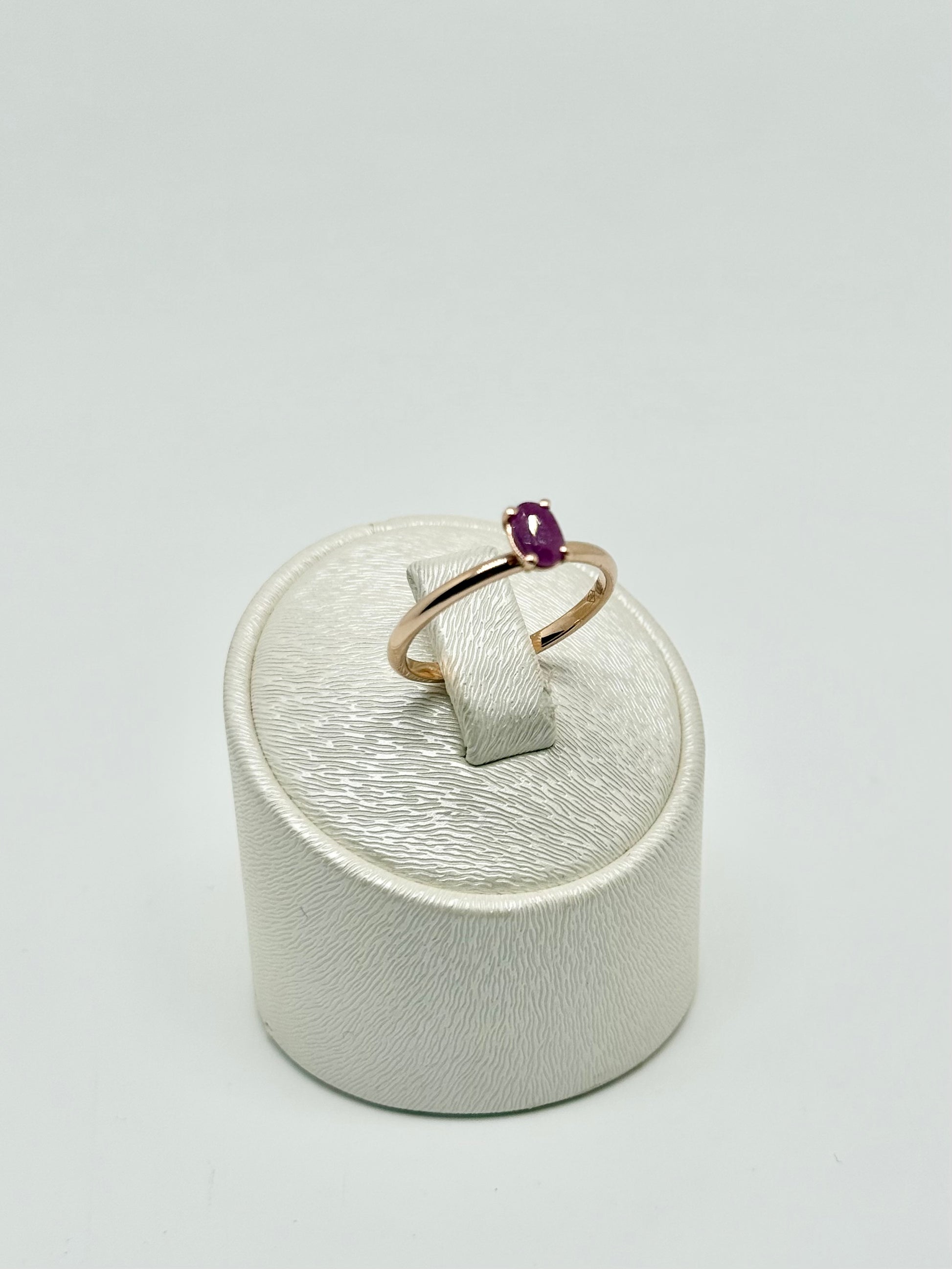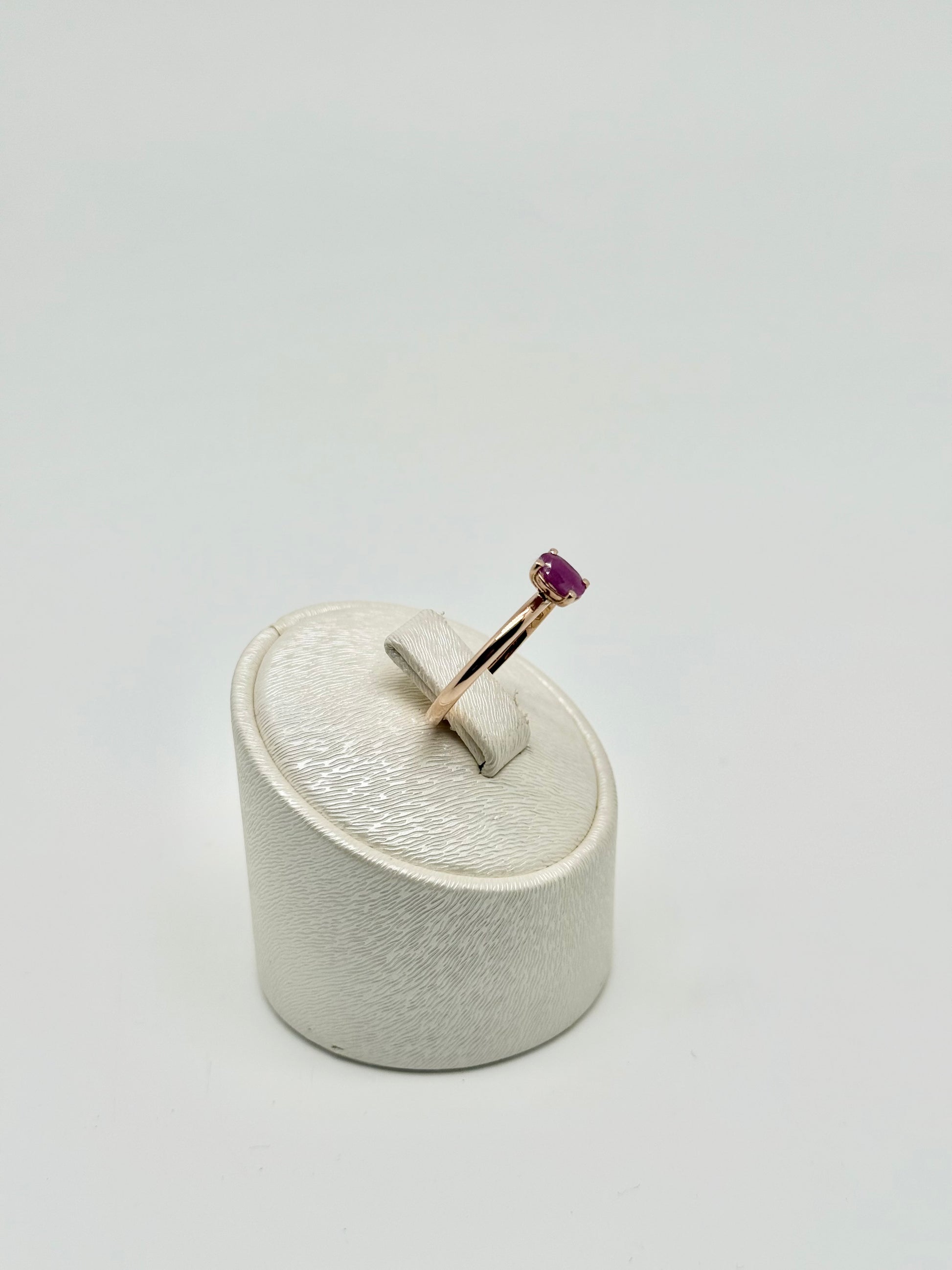 Roségouden solitaire ring bezet met een natuurlijke robijn van 0,20 karaat