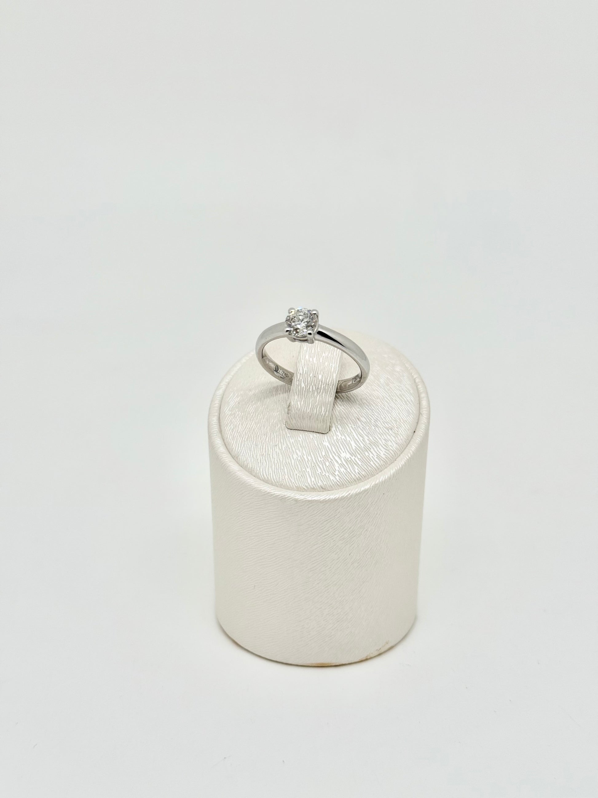 Belle bague de fiançailles en or blanc, discrète mais à la fois époustouflante grâce à la pierre étincelante de 0,70ct H couleur VVS1 qualité